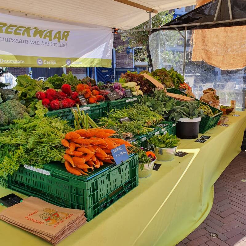 We want to make the step to becoming a sustainable consumer and citizen a simple one for you! Since May 2022, you can find our fresh seasonal produce on the Wageningen market as well as in local shops, restaurants and the meals of local caterers.